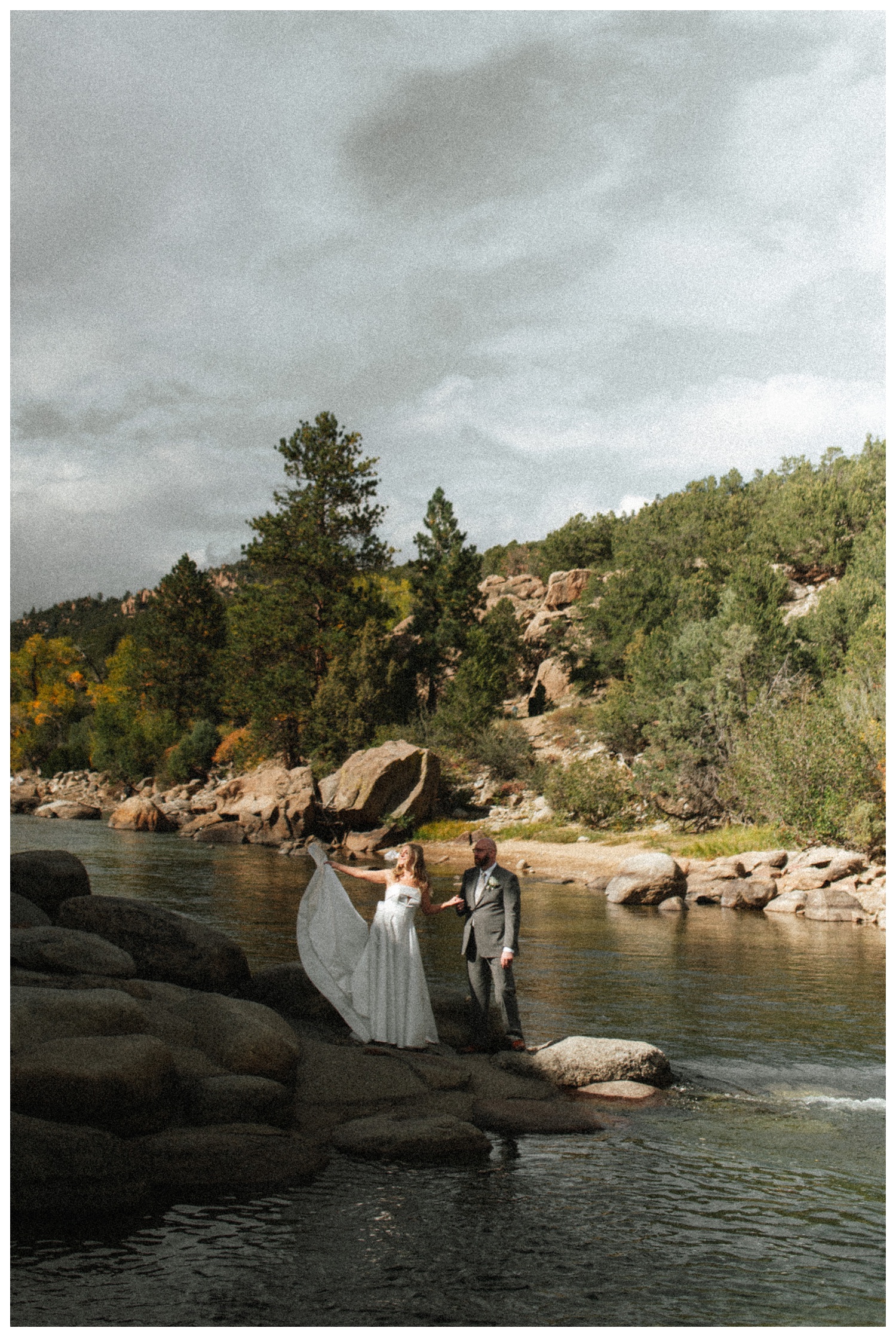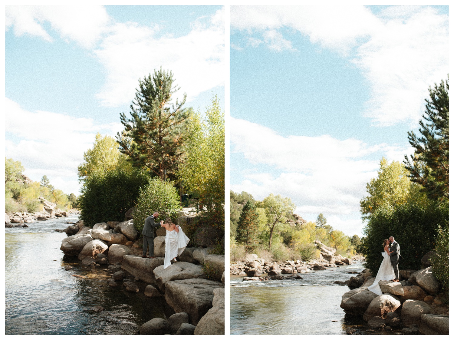 We met back up inside the Surf Hotel for their first look before heading down toward the river. That walk led to one of my favorite moments of the day. Private vows by the water. Just the two of them, reading words they’d written to each other by the flowing river…dreamy. It felt intimate and emotional in a way that only a Surf Hotel Wedding can feel. If you’ve never been, it’s an intimate hotel and venue tucked in the mountains with every last detail touched. We spent some time creating portraits along the river before heading back in, soaking up every bit of that early fall light.
