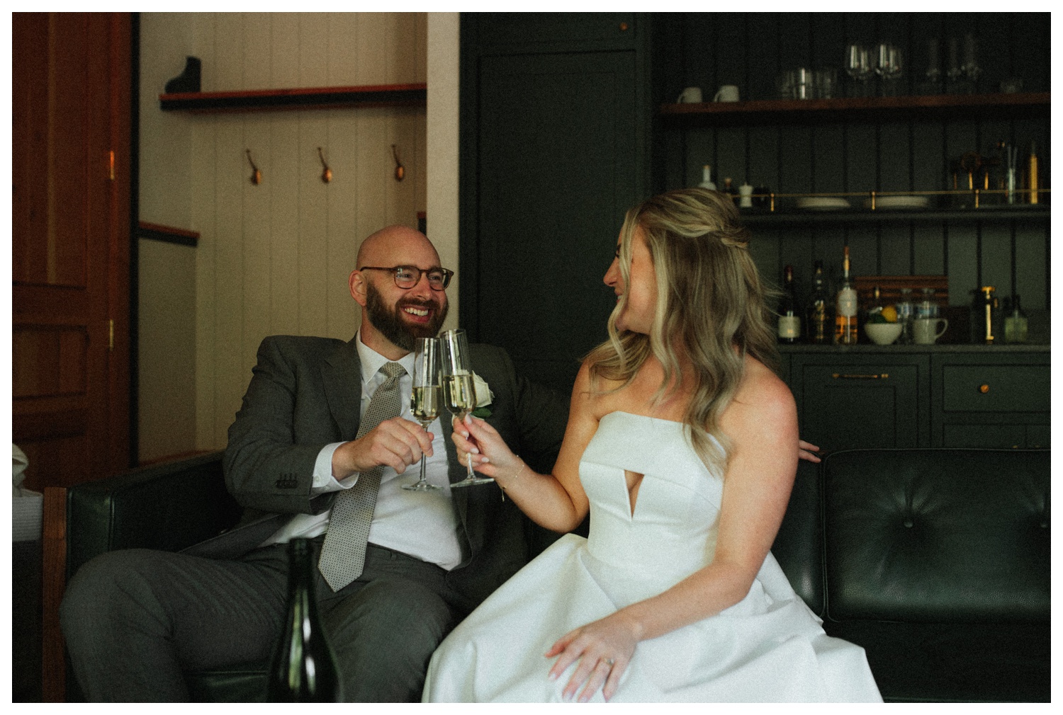 Before the ceremony, Alyssa and Allan popped champagne in their room while guests gathered in the chateau under the fall leaves. Champagne for the guests, conversation and some acoustic guitar playing in the background. The ceremony followed shortly after. It was funny heartfelt, personal, and surrounded by the people who love them most.